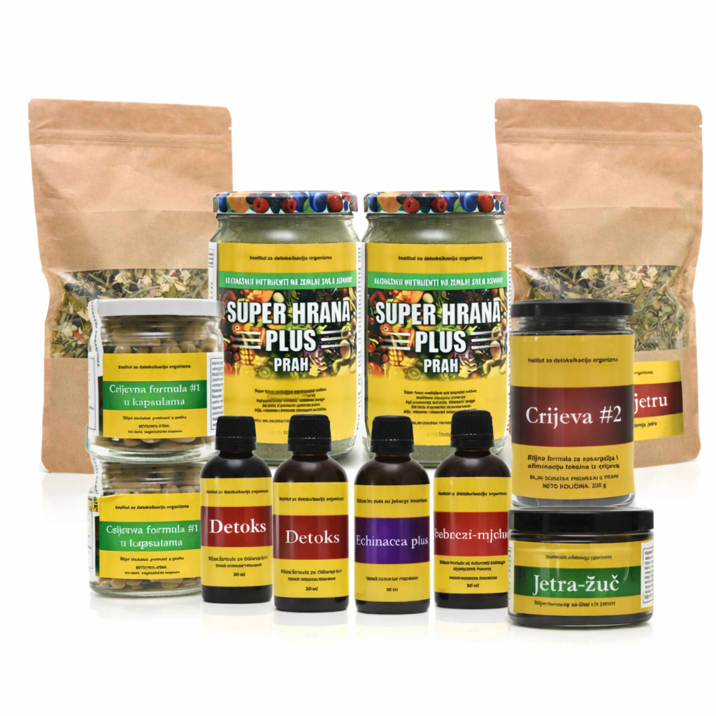 - Notes: Use only according to the instructions on the cover. Keep out of the reach of small children. The recommended daily dose should not be exceeded. A dietary supplement is not a substitute or substitute for a balanced diet. It is important to adhere to a balanced and varied diet and a healthy lifestyle. Suitable for vegans. Store closed in a dry and dark place, at a temperature of up to 25 °C. Attention: People taking medicines or suffering from a disease should consult a doctor before use. It is not recommended for pregnant women, nursing mothers or children. The shelf life is marked on the cover. Packaged: superfood plus 400g, intestines 1 100 capsules, intestines 2 230g, kidney tea 200g, liver tea 200g, Echinacea plus 100ml, detox 100ml, kidney bladder 100ml, liver bile 100ml. Everything on this website is informative and as such cannot replace the advice and diagnosis of a doctor. It is also not intended for diagnosis or therapy. Descriptions of the effects of the product are taken from traditional recipes and uses. We do not deal with diagnostics, prevention or treatment of diseases, but we base our work on promoting a healthy lifestyle. The information in this article may not be a substitute for professional medical advice. No person should use the information in this text for the diagnosis, prevention or treatment of diseases without consulting a qualified medical professional (doctor). The descriptions of the action of the product are taken from traditional recipes and uses.