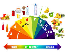 Evo jednog spiska koji izražava stupanj kiselosti i alkalnosti pojedinih vrsta hrane. Što je broj veći (plave boje), to je hrana više alkalna (bazna). Što je manji (crvene boje), to je kiselija.